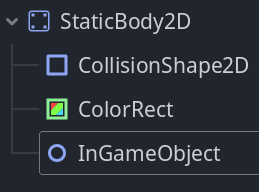 Now we can have basically any Godot scene tree setup and we can add the behaviour of an in game object onto it! So your object could be static, dynamic, a texture etc.
